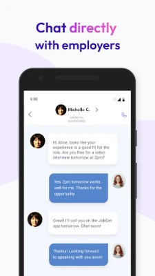 - Chat Directly with Employers: Skip the wait and chat with hiring managers in real time. Schedule your interview, ask questions and get immediate feedback, all in one place.