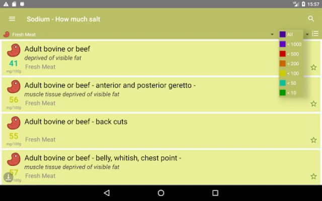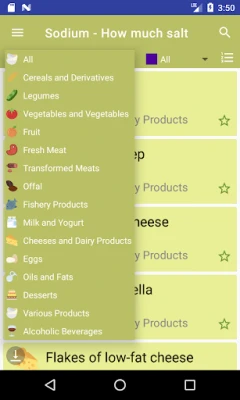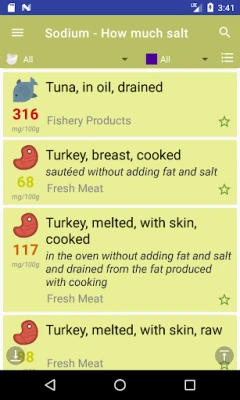 Sodium - How much Sale is an Android device app that lists the sodium content of foods ( mg / 100g).